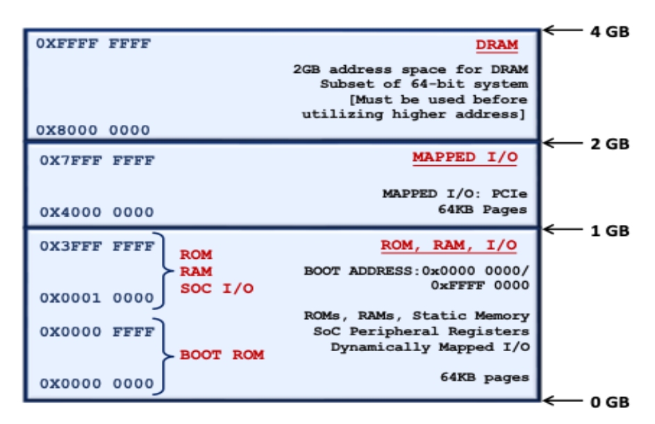 As shown in the figure, we follow a 36-bit memory map to design 64-bit SoCs.