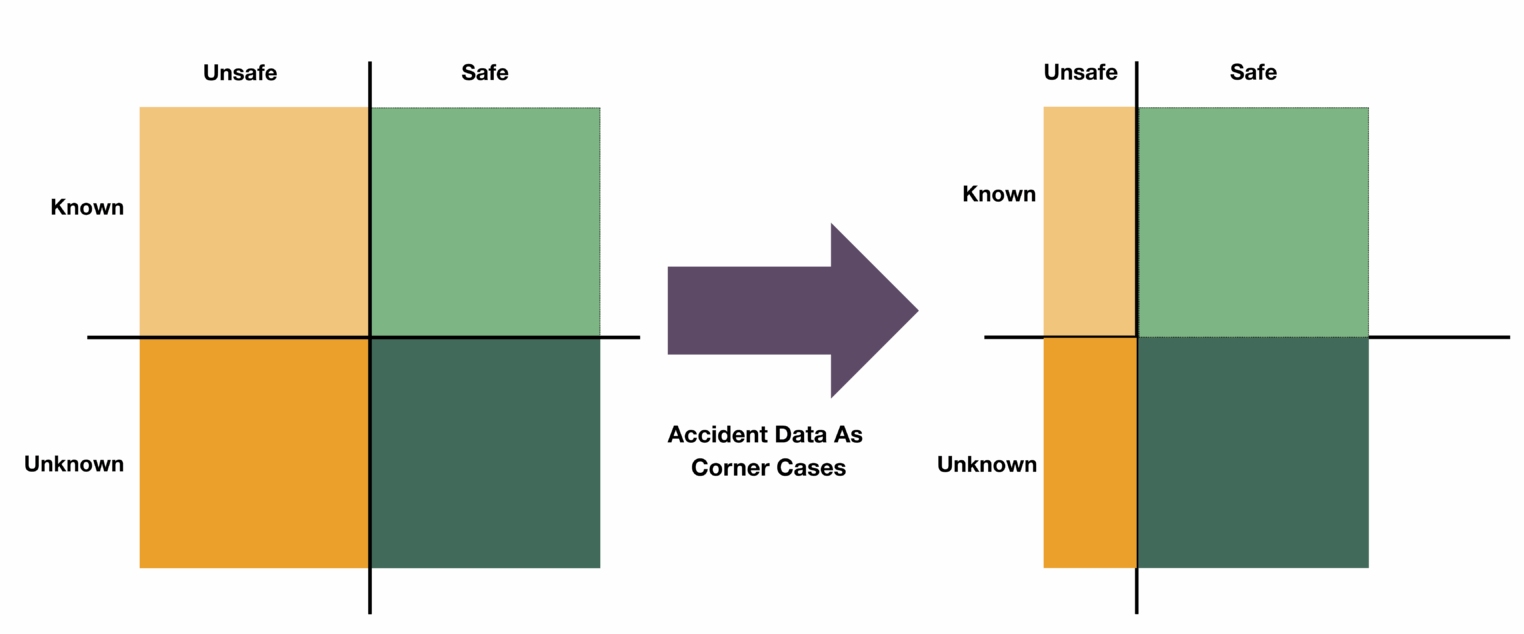 Accident reconstruction methods aim to identify and analyze these aligned weaknesses, thereby transforming unknown and unsafe scenarios into known and safe ones.