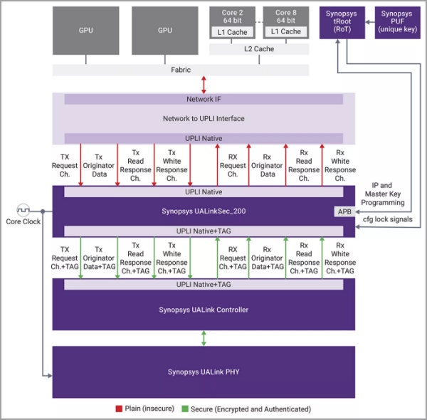 Figure 2: System-level integration of Synopsys UALinkSec_200 Security Module