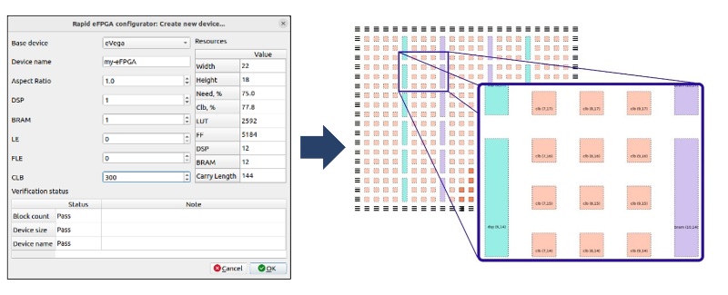 Figure 1. Rapid eFPGA Configurator and P&R View